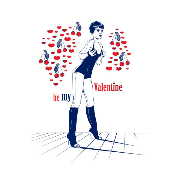 Keywords: cartoon, line art, character, beauty, cherry, vector material
